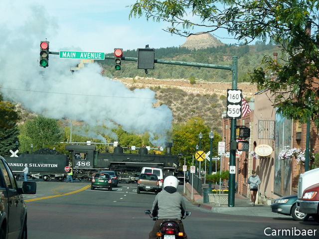 Hier haben wir heute morgen knapp die Abfahrt des Zuges verpasst, aber noch ein Bildchen gemacht, wie er gerade vor uns über die Strasse ist.