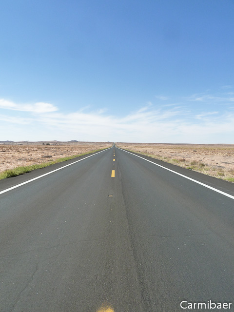 Kurze Zeit später haben wir mal wieder angehalten, denn die Strasse war wirklich lang und auch einigermaßen verlassen. Da hat Carmen gleich mal ein Bildchen gemacht. So stellt man sich eben die Weiten des Landes vor.