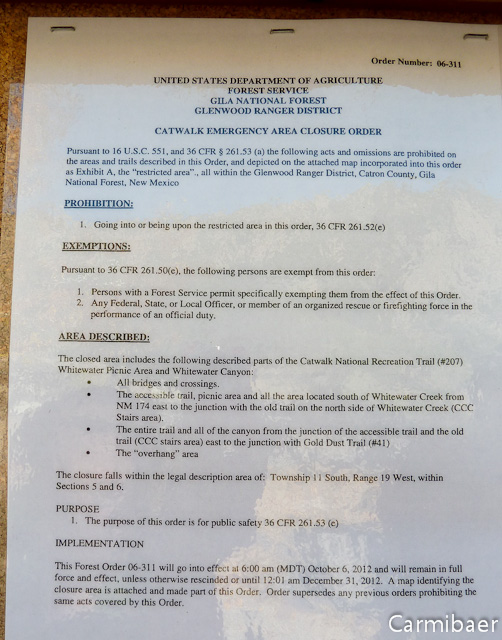 Später hat Knut im Internet recheriert, dass es im Juli hier gebrannt hat und dass Ende September die Brücken wegen Hochwasser abgebaut wurden. Der Catwalk mit dem eingeschränkten Loop ist auch erst seit 06.10. wieder geöffnet. Echt schade, denn wir haben uns sehr darauf gefreut. Keine Ahnung, ob die diesen nächstes Jahr wieder voll in Betrieb nehmen.