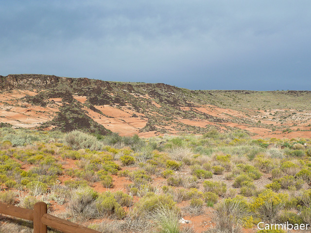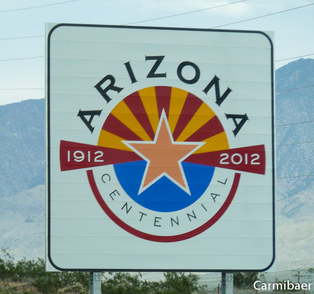 Unterwegs sind wir auch kurz durch Arizona gefahren und ohne anzuhalten hat Carmen doch ein einigermaßen gelungenes Bild vom Stateschild hinbekommen.