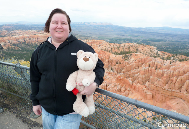 Es war noch zu früh zum Einchecken. Deshalb sind wir bis zum Bryce Point gefahren. Es war schon recht kühl und zugig. Aber die kurzen Hosen wurden noch nicht getauscht.