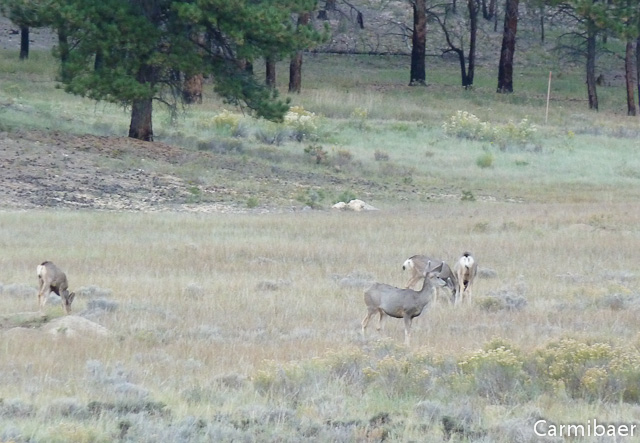 Gegen 18 h sind wir nochmals aufgebrochen und haben einen Blick in den Canyon geworfen, da es kurzzeitig mal etwas aufgeklart hat. Am Strassenrand, sowie ein Stück abseits haben wir eine Menge Deers gesehen.