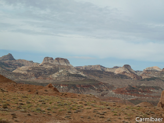 Gegen 9.00 h haben wir uns auf den Weg gemacht zum Cathedral Valley. Dies ist ein Teil vom Capitol Reef N.P. Vorher wurde allerdings noch am Nationalparkschild angehalten und ein Foto gemacht.