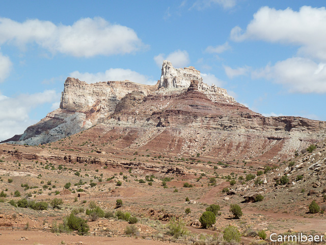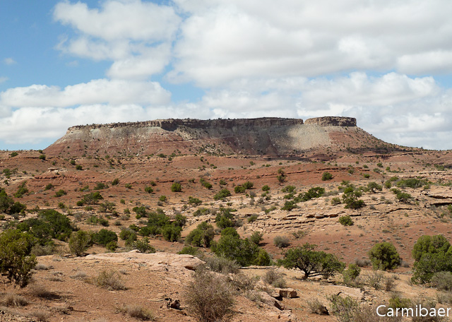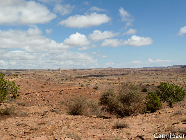 Danach ging es über die Temple Mountain Road in Richtung I 70. Wir wollen es zumindest probieren, denn die Rangerin war sich nicht sicher, ob man sie fahren könnte. Sie meinte, wenn, wäre am Anfang der Wash wohl etwas schwierig, der Rest geht, wie ihr jemand gesagt hat. Es hat hier auch in den letzten Tagen geregnet. Aber heute ist ja herrliches Wetter. Es lacht die Sonne vom Himmel und es gibt Schäfchenwolken.