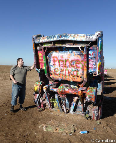 Als erstes geht es ein Stückchen Richtung Westen. Denn wir wollen zur Cadillac Ranch. Mal sehen wie die bunten Autos so aussehen. Als wir angekommen sind, haben wir Bären uns entschieden lieber im Auto zu bleiben, denn es ist ganz schön windig und die Erde wird nur so aufgewirbelt. Ich möchte ja nicht, dass ich zu schmutzig werde. Wie sieht das denn sonst auf den weiteren Bildern aus. Sowas geht ja gar nicht. ![]()