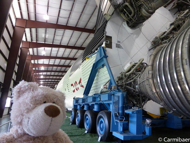 Die Fahrt wird nur unterbrochen, um bei einem Best Buy nach etwas zu schauen. Leider hat er das Gesuchte nicht. Demnach geht es jetzt auf direktem Weg zum Space Center, wo wir gegen 11.15 h angekommen sind. Die 6 $ Parkgebühren haben wir gleich entrichtet und haben noch eine merkwürdige Broschüre bekommen, die Carmen dann einfach mit zum Eingang genommen hat. Und was soll ich sagen, dort war ein 10 $ Gutschein für den Eintritt drinnen. So haben die beiden 35,90 $ für beide Tickets erworben. Wir haben uns dann 3 Stunden im Space Center aufgehalten. Es war einiges zu sehen, aber irgendwie haben wir uns doch mehr Ausstellung darunter vorgestellt. Auch haben wir die 90 min. Tramtour mitgemacht. Ich kann nur sagen, mir war es im Auto ganz schön warm. Der Glücksbär hat mal wieder Glück gehabt, denn er durfte mit rein. Na ja ich kann halt nicht alles haben, bin halt auch ein Stückchen grösser und sehe so doch mehr von der Welt.
