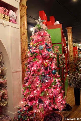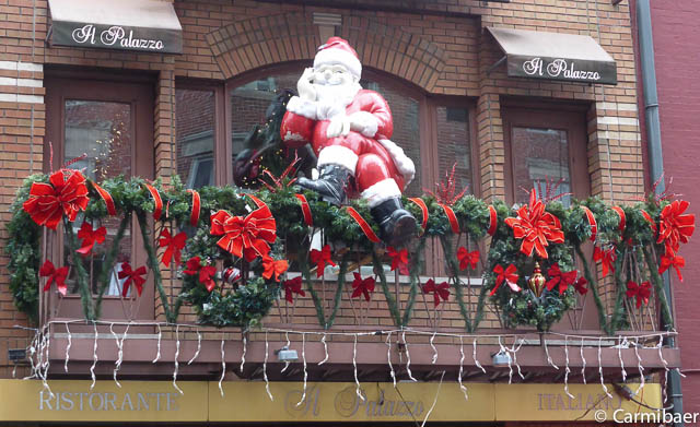Carmen hat von dem süssen Zeugs nichts haben wollen. Sie hat nur eine Cola getrunken. Und die war auch nicht gut, da es eine Light oder eine war, wo der Sirup nicht richtig geflossen ist. Irgendwann nachdem es ihr schlecht war hat sie sie reklamiert und eine neue bekommen. Da es dort Internet gibt, hat sie kurz Mails gecheckt und mit Knut geschrieben. Ins Forum ist sie aus unerfindlichen Gründen nicht gekommen. Na ja auch nicht so schlimm, wir wollen schließlich weiter. Uns hat es eine zeitlang durch die kleine Straße von Little Italy getrieben und besonders hat es uns ein Christmas Shop angetan und dort wurde Carmen auch fündig. So einige Dinge für zu Hause ist in ihren Besitz übergegangen. Nicht nur für den Weihnachtsbaum, auch als Deko zum hinstellen ist was dabei. Und sogar etwas mit Bärchen.