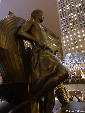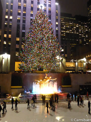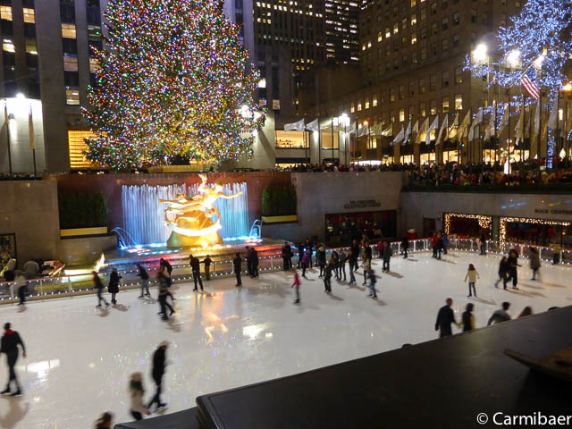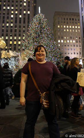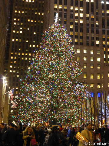 Carmen hat sich noch ein Eis geholt, was wir uns auf dem Zimmer geteilt haben. Unsere Pause war nicht wirklich lang, denn gegen 18.00 h sind wir wieder aufgebrochen. Als erstes geht es mit der U-Bahn zum Rockefeller Center. Die Mädels wollen den Baum nochmal sehen. Aber vorher werden noch die bunten Lichter abelichtet.