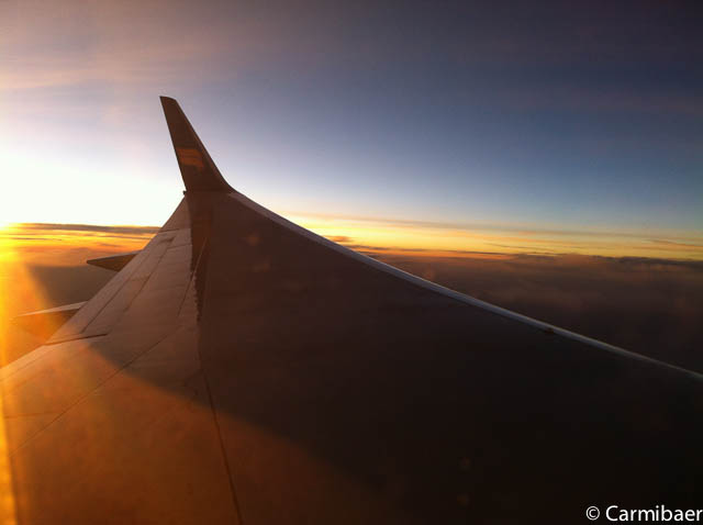 Um 7.24 h war dann „Boarding completed“ und gestartet sind wir um 7.40 h isländischer Zeit. Der Flieger war bis auf ein oder zwei Plätze komplett voll und somit mussten wir im Gepäckfach bleiben. Allerdings hatten wir es recht bequem, denn da wir bei den ersten waren die eingestiegen waren konnten wir uns unseren Platz oben noch aussuchen.
