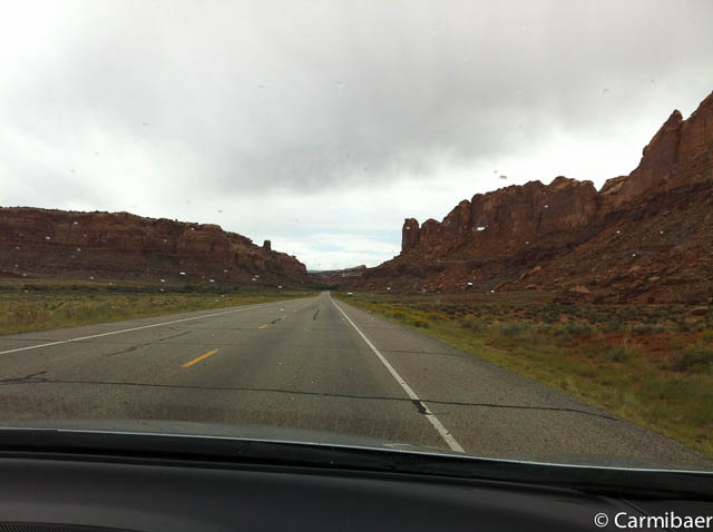 Gegen morgen hat es angefangen zu regnen. Aber so richtig. Da haben wir uns gedacht, drehen wir uns nochmal um und schlafen solange wir können. Um 8.10 h war allerdings die Nacht doch schon rum. Aber der Regen war immer noch sehr heftig. Wir haben uns in aller Ruhe fertig gemacht und als wir zum Frühstücken sind, hat es nur noch getröpfelt und somit konnten wir die Taschen und auch uns trockenen Fusses oder fast zumindest ins Auto befördern. Der nächste Weg war zum Walmart, wo wir noch ein paar Dinge eingekauft haben. Auch wurden wir alle mehr oder weniger schnell fündig. Dann wurde die Luft aus unserem Tank noch gelassen und um 11.30 h sind wir aus Grand Junction weggefahren. Hier hat jetzt herrlicher Sonnenschein vorgeherrscht. Aber das bleibt leider nicht so.