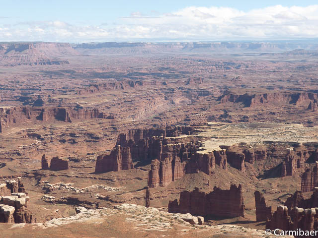 Als wir Moab immer näher kamen haben wir entschieden, dass wir erstmal zum Canyonlands Nationalpark abbiegen, da es in die Richtung heller und freundlicher aussah als in Richtung Moab. Um 13.30 h haben wir demnach dann den Abzweig zum Canyonlands genommen.