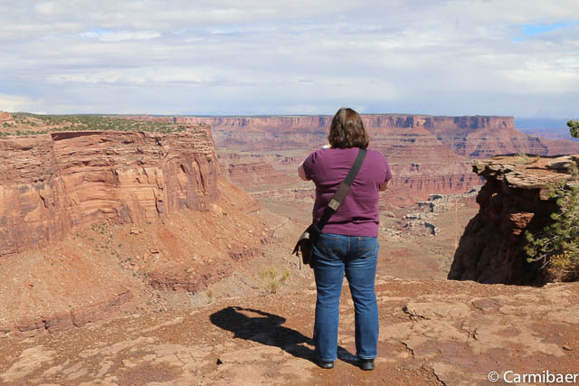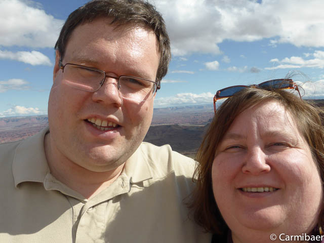 Als sie sich gerade Richtung Auto bewegen wollten kamen doch Heike und Hermann aus dem USA Forum an. Wir wussten ja, dass sie auch zur selben Zeit in Moab sind wie wir, aber dass wir auch ein spontanes Treffen hinbekommen, daran hätten wir alle nicht gedacht. Sie haben uns Bären nämlich schon auf dem Parkplatz im Auto entdeckt und wussten so, dass Carmen und Knut auch nicht weit sein können. So wurde ein ausgedehntes Schwätzchen am Rim gehalten und nach gut einer halben Stunde sind wir alle erstmal unseres Weges gefahren. Wir haben uns dann für den Abend zum Essen verabredet.