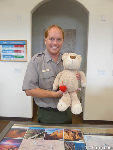 Als erstes haben wir das Visitorcenter angesteuert, wo es mal wieder ein nettes Rangerbild von mir gibt. Der Ranger fand mich wohl auch ganz nett, denn er hat schon bevor ich auf ihn zu bin mit seiner Kollegin gesprochen als wir zur Tür rein sind. ![]()