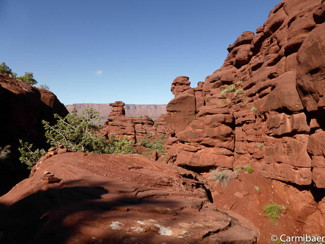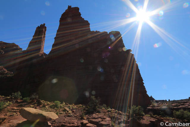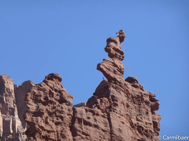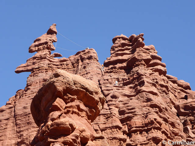 Nach einer guten ¾ Stunde sind die beiden an den Fishertowers bzw an dem kleinen Plateau, von wo man sie gut sehen kann, angekommen.