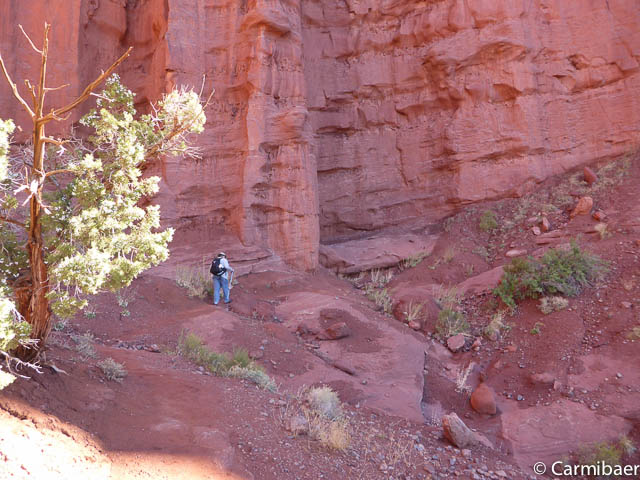 Hier ein Bild aus der Ferne, wo einstmal der Wall Arch gestanden hat. Irgendwie ist das Carmen bei ihrem letzten Besuch nicht mehr so in Erinnerung gewesen und so ist sie die paar Meter noch gelaufen, um einen Blick auf die Abbruchkante zu erhaschen.