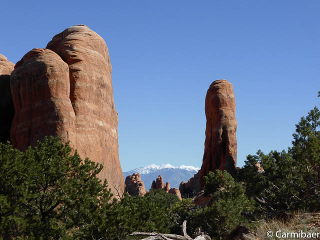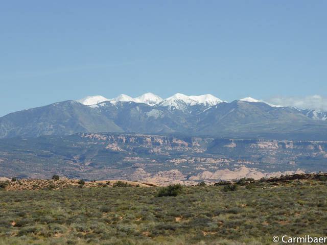 Denn gerade auf dem Rückweg mit den schneebedeckten Hügeln der La Sal Mountains sah das Ganze echt nett aus.