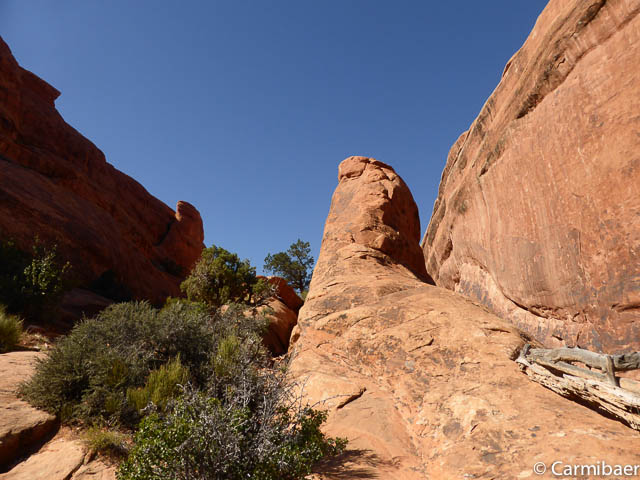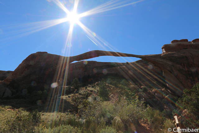 Dann sind die beiden nochmal losgelaufen zum Landscape Arch. Dort wollte Carmen unbedingt noch einmal hin. Wer weiss, wielange der noch steht und ob er beim nächsten Besuch dann noch da ist. Es waren ziemlich viele Leute unterwegs, aber das war ja zu erwarten auf dem Weg dorthin, denn dieser ist doch recht einfach, denn die schweren Passagen fangen erst nach dem Landscape Arch an.