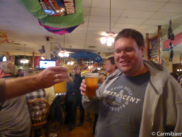 Sind zur Brewery gefahren und haben dort in der Bar auf einen freien Platz gewartet. Und irgendwann haben wir dort einen Tisch ergattert, bevor unser Pieper für einen Tisch im Restaurant geleuchtet hat. So sind wir dort geblieben, damit wir anschließend nicht nochmal umziehen müssen. Das Essen war lecker und ans Bier hat sich Knut, glaub ich, auch langsam gewöhnt. ![]()