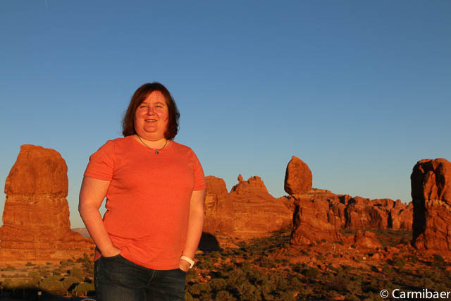 Am Eingang vom Arches haben wir aber noch das obligatorische Bild gemacht, wozu wir gestern Abend auf dem Rückweg keine Lust hatten. Denn da war Schlange stehen angesagt. ![]()