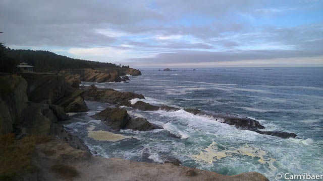 Als erstes geht es zum Shore Acres State Park, wo wir die tolle Aussicht geniesen und dabei einen unserer Muffins essen.