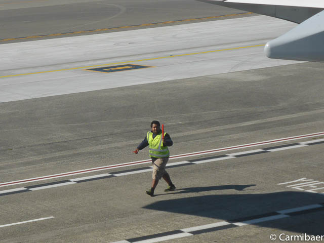 Da Carmen am Fenster sitzt hat sie einen schöne Platz, um noch ein paar Bilder vom Flughafen zu machen.