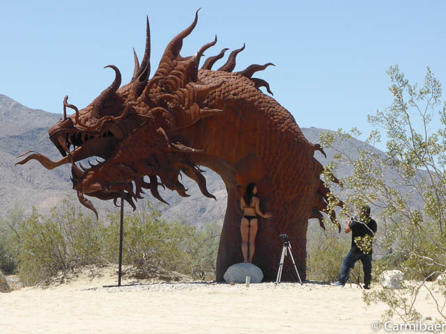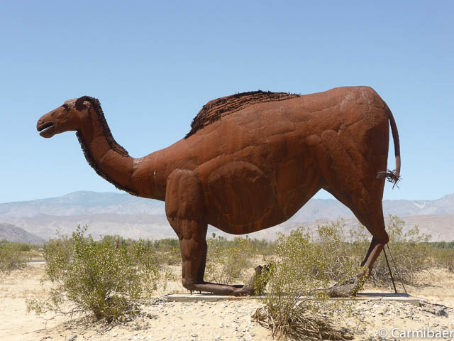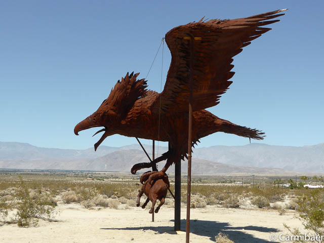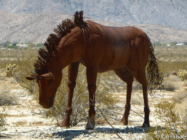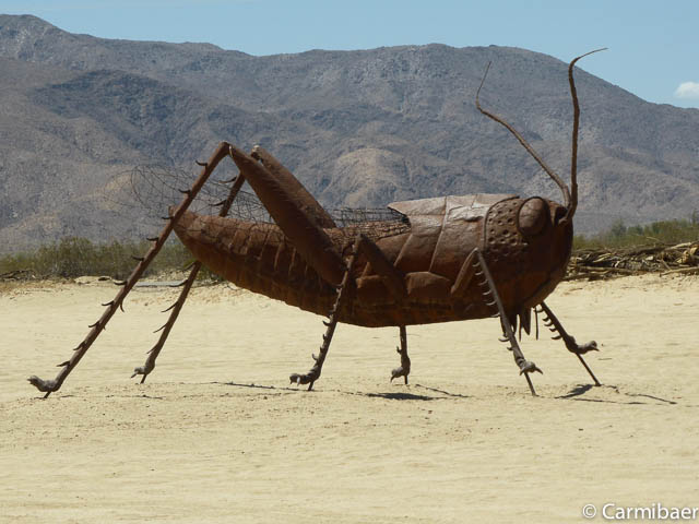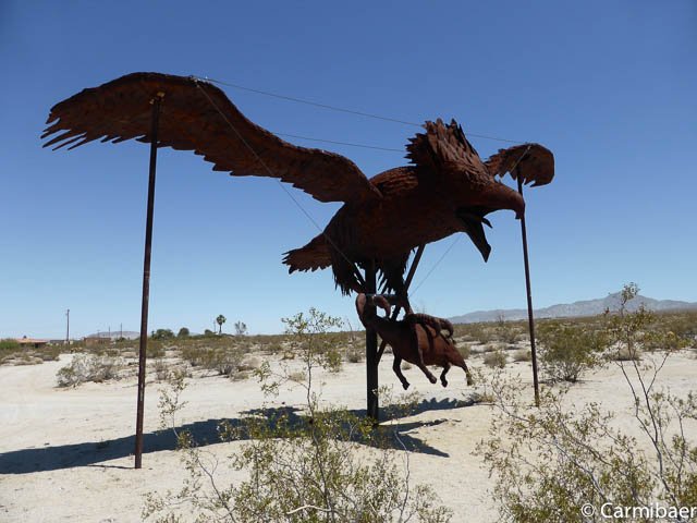 Dann kommen wir endlich zu den Figuren. Diese liegen weit verstreut vor und hinter Borrego Springs. Carmen hat schon einige davon im Internet gesehen und wollte das ein oder andere unbedingt finden.