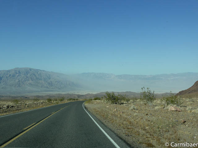 Mittlerweile ist es 7:35 Uhr und wir haben 67 °F. Wir fahren jetzt durchs Death Valley.