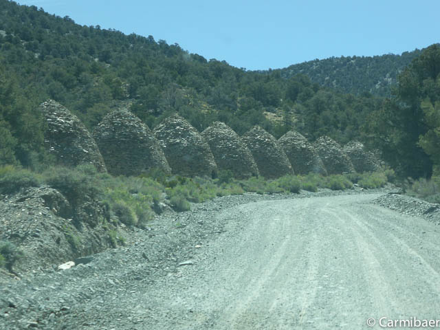 Die Charcoal Kilns erreichen wir gegen 11:11 Uhr und schauen uns dort ein wenig um. Allerdings sind die letzten drei Meilen auch wieder nur eine Gravelroad. Und da sind auch schon einige komische Steine unterwegs auf der Straße.