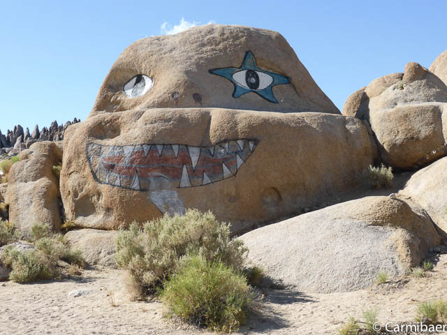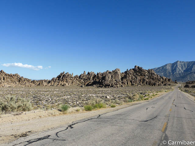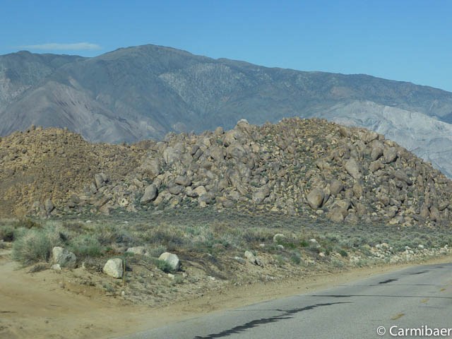Es geht die Whitney Portal Road entlang. Als erstes haben wir noch bei der Miss Alabama oder dem Felsrock angehalten.