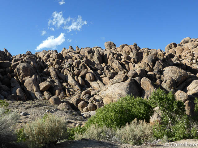 Unten angekommen sind wir noch mal rechts abgebogen zu den Alabama Hills. Zumindest ich möchte mir heute noch ein Teil anschauen, damit wir morgen mehr Zeit für andere Dinge haben.