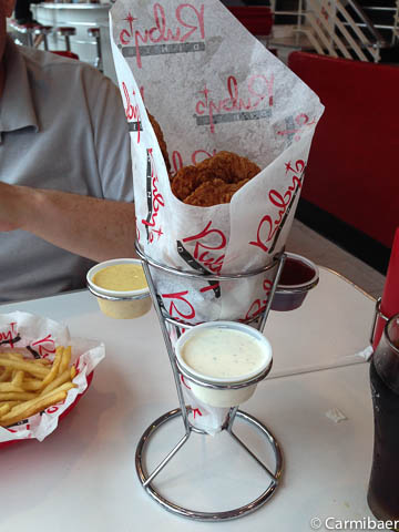 Zurück in Laguna Beach kehren wir bei Ruby’s Diner ein und essen eine Kleinigkeit. Hier fühlt man sich gleich in die Sixties zurückversetzt. Auch das Essen war lecker. Für Knut gibt es einen Burger und für Carmen Chickenteile.