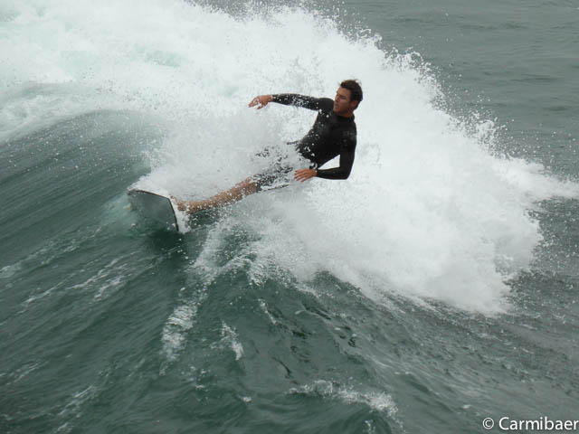Uns gefällt es hier richtig gut. Auf dem Pier schauen wir den Surfern zu.