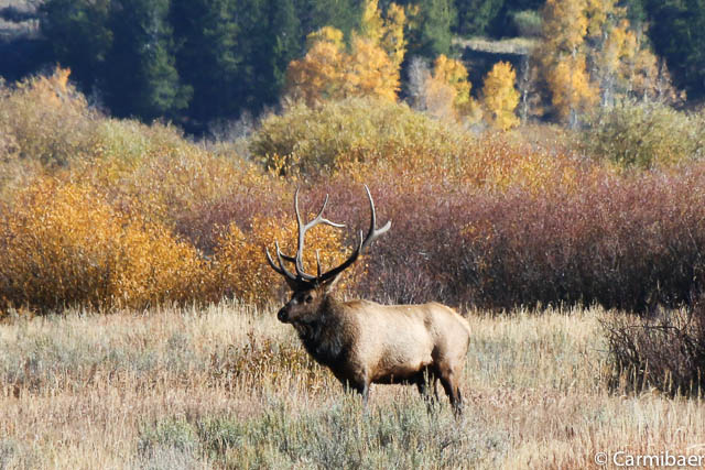 Kaum ein paar Meter gefahren sehen wir diesen schönen Elkbullen kurz vorm Jackson Lake Dam.