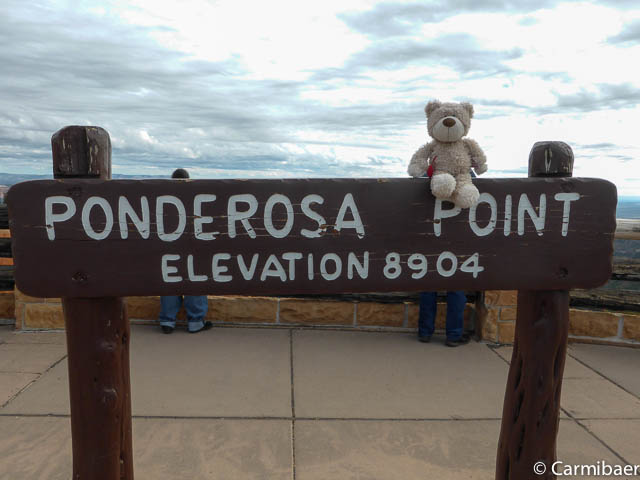 Dann fahren wir bis zum Rainbow Point, der bei 9115 Fuß Höhe liegt. Natürlich fahren wir mit dem Auto und versuchen einfach unser Glück. Wir haben es Chris ja schon ein wenig am Gesicht angesehen, was er uns nicht direkt sagen konnte, da zuviele Leute um uns rum gestanden sind. Er muss sich ja schließlich an die offizielle Anweisung halten, was dann jeder Besucher damit macht, liegt nicht mehr in seiner Hand.