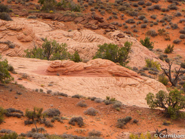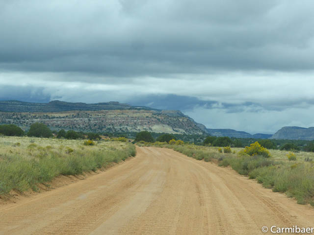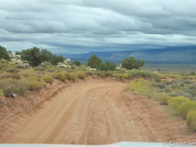 Um 12:45 h biegen wir auf die Hole in the Rock Road ab und fahren diese bis zum Dry Fall Trailhead.