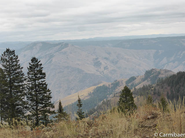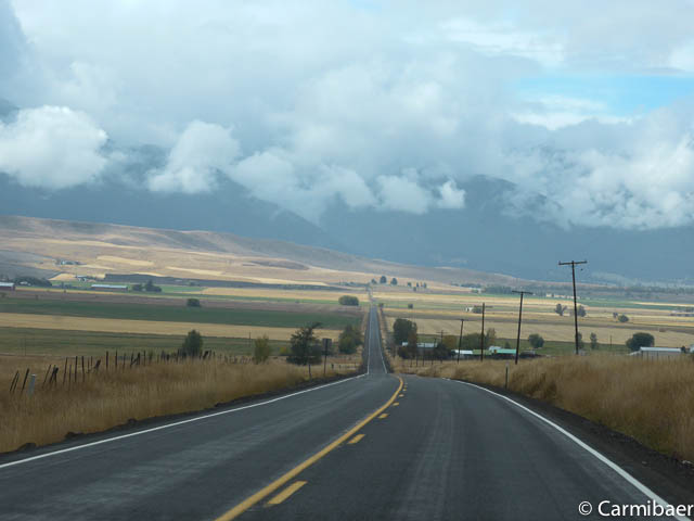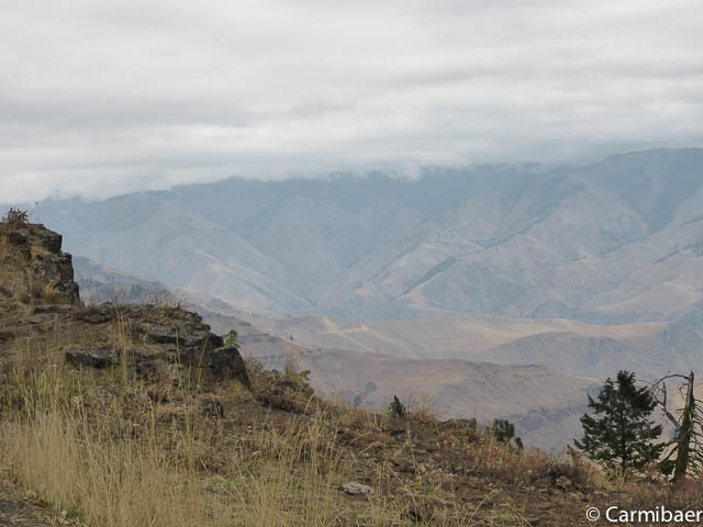 Jetzt fahren wir den Hells Canyon Byway. Leider fängt es etwas zu regnen an und es gibt viele Wolken.