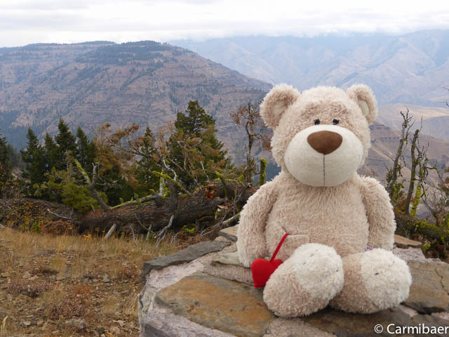 Um kurz vor 12:00 h haben wir den Hells Canyon Overlook erreicht. Hier machen wir eine kurze Mittagspause und essen ein Stückchen.