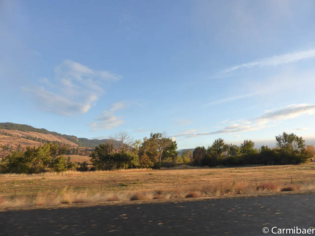 Leider regnet es zwischendurch immer mal wieder, aber wir sitzen im trockenen Auto. Da ist das nicht tragisch. Aber die vielen gelben Felder fallen mir in Oregon wieder auf. Das gefällt mir ausgesprochen gut.