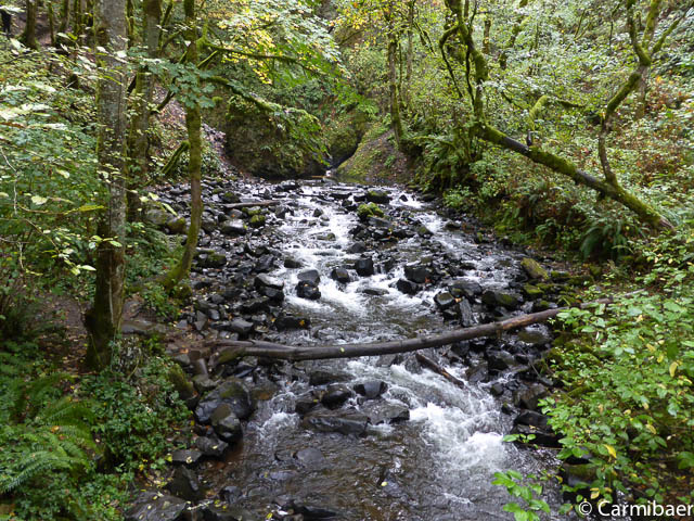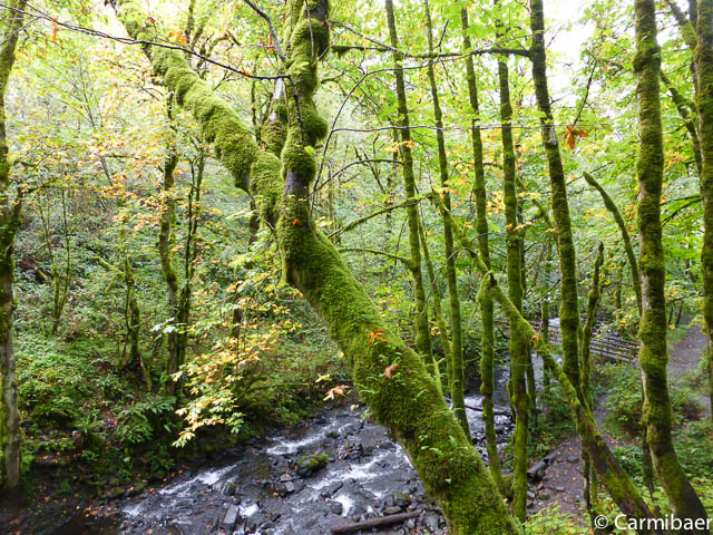 Um 11.04h erreichen wir die Ausfahrt 35, wo es u.a. zu den Multnomah Falls geht. Am Horsetail Fall halten wir nicht und fahren weiter bis zum Multnomah Fall. Hoffentlich hört es noch ganz auf zu regnen. Es fällt gerade nur ein vereinzelter Tropfen. Ich mag die Fälle doch gern aus der Nähe sehen. Aber Regen mag ich nicht. ![]()