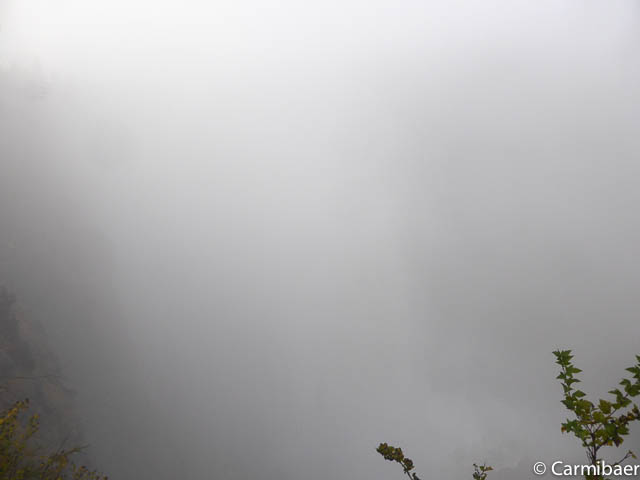 Leider sieht man von den Fällen nicht viel, da es zu neblig ist. Dafür werden die beiden ordentlich geduscht.
