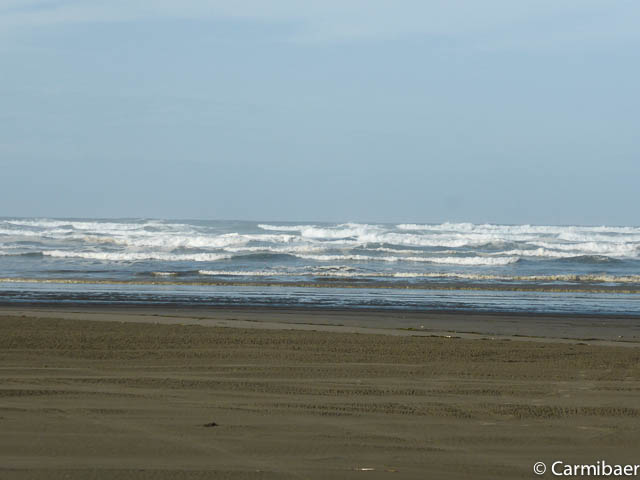 Es geht kurz zum Strand, aber die Möwen vertreiben uns recht schnell. Vielleicht denken Sie das wir Futter für sie sind.