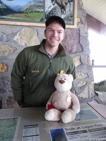 Als erstes geht's ins Apgar Visitorcenter. Hier bekomme ich mein erstes Rangerbild. Die Dame ist echt nett.