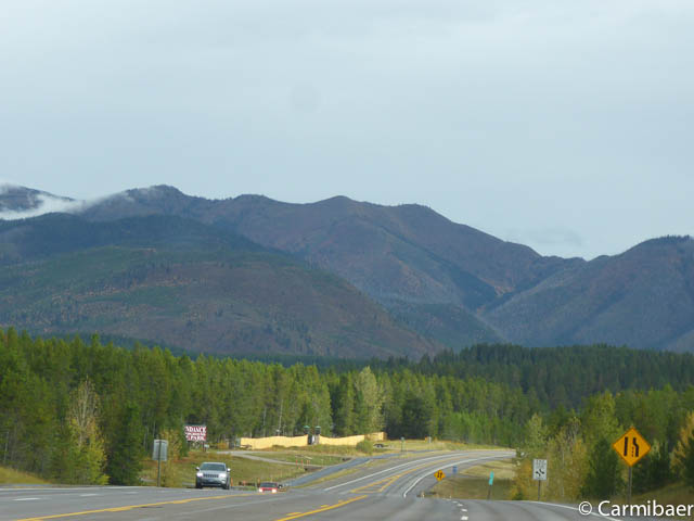 Um 8:45 h geht es, nachdem Santa auch Futter bekommen hat, bei 50 F in Richtung Glacier N.P.