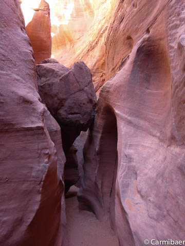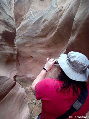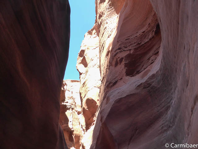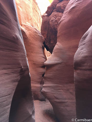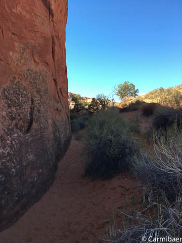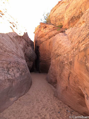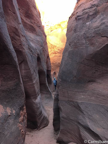 Jetzt wollen wir noch zum Spooky Canyon, wenn wir schon mal hier unten sind. Weit ist es nicht, aber der Sand und die Sonne sind schon heftig. Denn es gibt hier keinen Schatten. Und wie ihr wisst, kann Carmen ja keine Sonne ab.