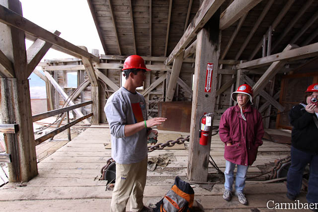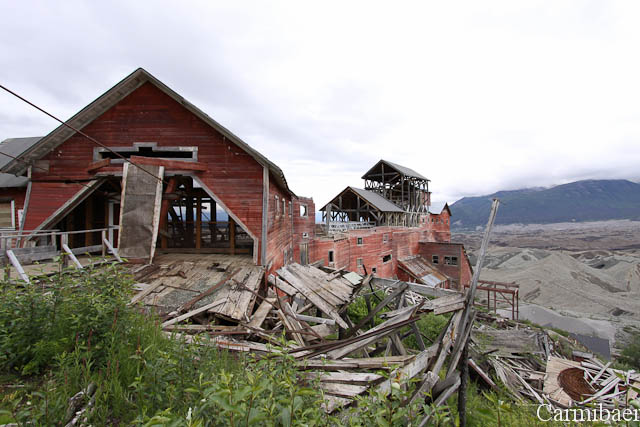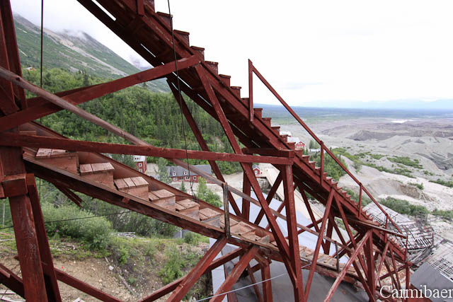 Um 9.30 h waren die beiden in Kennecott und gleich darauf ging die Führung los. Die Fahrt war schon sehr bumpy auf der unbefestigten Strasse, auch war diese nicht wirklich sehr breit. Die Führung hat 2 1/2 Std. gedauert und hat uns auch ins Innere der Mine geführt, wo man sonst nicht hinkommt. Carmen hat zwar nur einen kleinen Teil verstanden, aber auch für sie war es interessant. Sie hat viel gefilmt und Knut hat Bilder gemacht. Die Arbeit muss ja mal gerecht aufgeteilt werden. ![]()