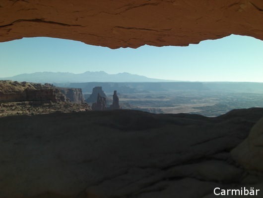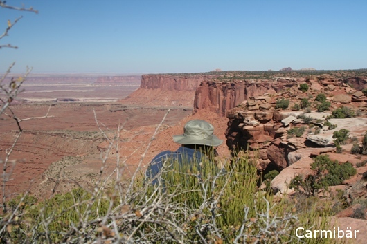 Carmen und Knut haben mich im Auto gelassen und sind als erstes Mal zum Mesa Arch gelaufen, um zu schauen, wie weit es morgen früh zum Sonnenaufgang ist. Der Weg war nicht allzu weit und somit waren sie schnell wieder bei mir im Auto. Carmen konnte aber nicht widerstehen und hat schon mal ein paar Fotos gemacht. Wer weiss, wie es morgen früh dann aussieht.
