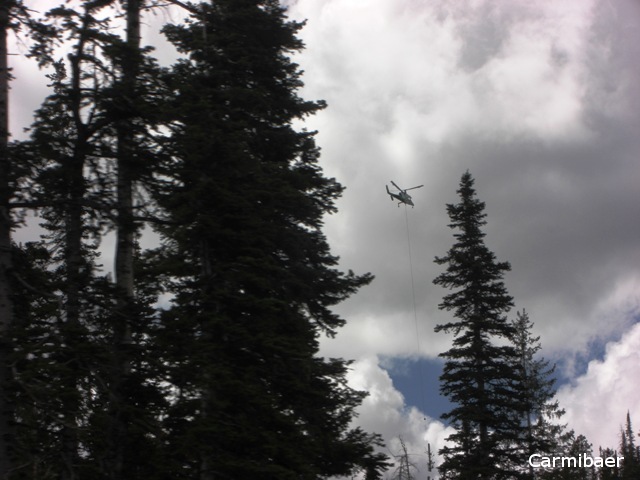 Hier noch ein paar Bilder von unterwegs, denn wir haben heute auch wieder einen Hubschrauber beobachtet, der ganze Baumstämme aus den Wäldern gezogen hat.