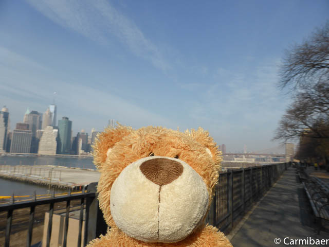 Als erstes geht es Richtung Blooklyn Heights, von wo wir einen super schönen Blick auf die Skyline von Manhattan haben. An zwei Stellen sind Bronzeplatten in den Boden gelassen, wo man Skyline zu unterschiedlichen Jahren sehen kann. Dies ist sehr interessant.