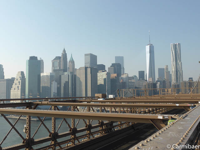 Weiter geht es zur Brooklyn Bridge, wo wir gegen 12.50 h ankommen und ganz gemütlich drüber laufen.
