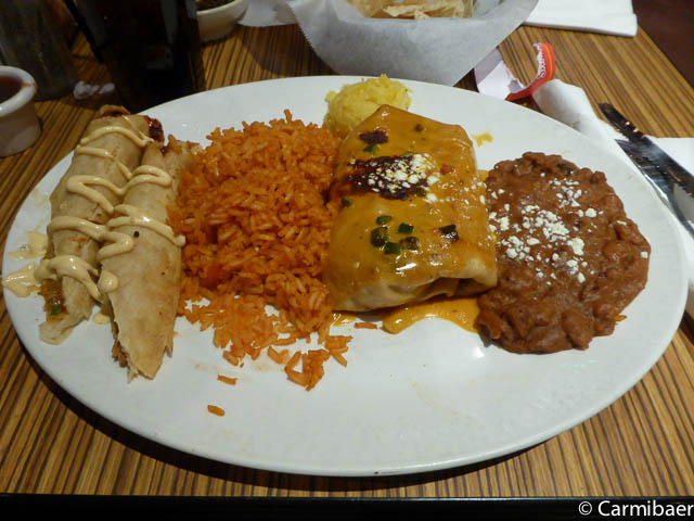 Kurz darauf haben wir den Platz für unser Abendessen erreicht. Die beiden Mädels waren froh endlich zu sitzen. Wir sind auch ziemlich viel gelaufen. Das Abendessen besteht aus einer zweier Combo. War lecker. Allerdings war es zwei Häuser weiter doch noch einen Ticken besser gestern. Und mit dem Mexikaner in Page kann der hier nicht mithalten.